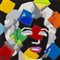 Ugo Nespolo Mosso Santa Maria (Bi) 1941 Arlequin , Acrilici su legno inciso, cm. 20x20, Firmato i basso a sinistra Sul verso: firma, timbro a fuoco dell'Artista,descrizione ed etichetta "Autenticity Nespolo con n° 3200731981. Autentica dell'Artista su foto, con n° 3200731981.