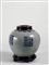 Giara a cipolla in porcellana celadon con decorazioni a ideogrammi bianche...