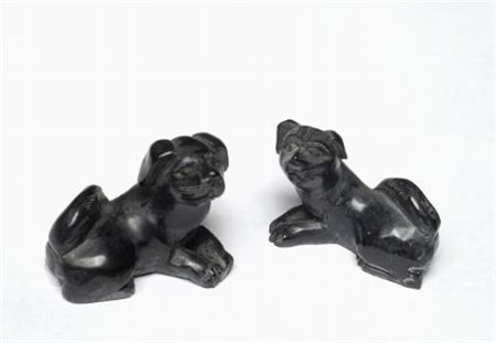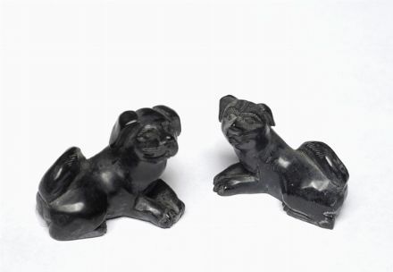 Netsuke Coppia di cani in pietra intagliata, Cina, XIX sec.