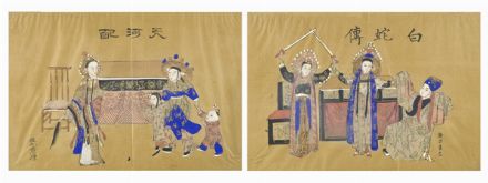 Lotto 345 | Madre con figli; Scena di rituale Coppia di acquerelli su carta, Cina XIX...