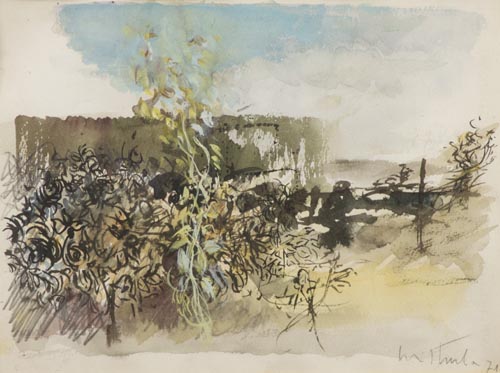 Luiso Sturla Chiavari 1930 Paesaggio 1971, Tecnica mista su carta, cm. 22x30 Firma e data in basso a destra.