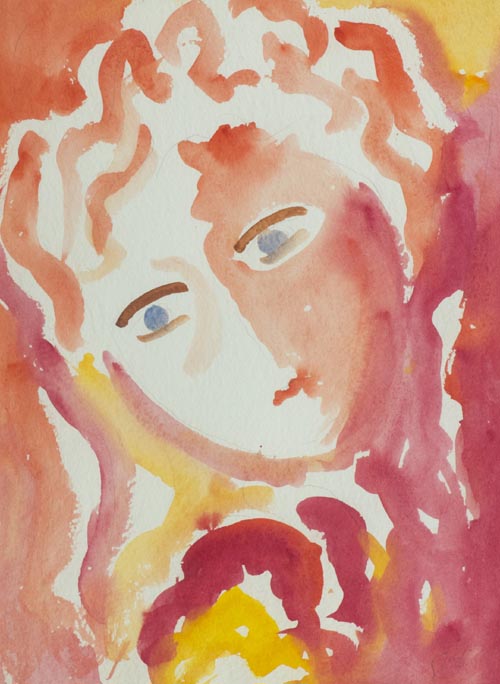 Virgilio Guidi Roma 1891 Venezia 1984 Volto , Acquerello su carta, cm. 37x28 Firmato in basso a destra.