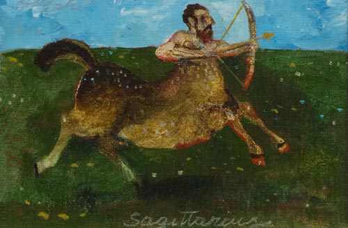 Antonio Possenti Lucca 1933 Sagittario , Olio su cartone telato, cm. 12x17,5 Sul verso: firma e titolo.