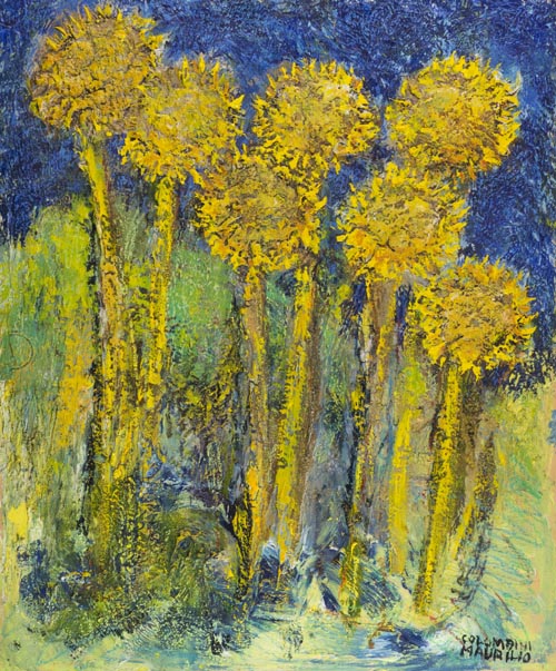 Maurilio Colombini Piombino (Li) 1937 Girasoli , Olio e tecnica mista su tavola, cm. 120x100 Firmato in basso a destra.