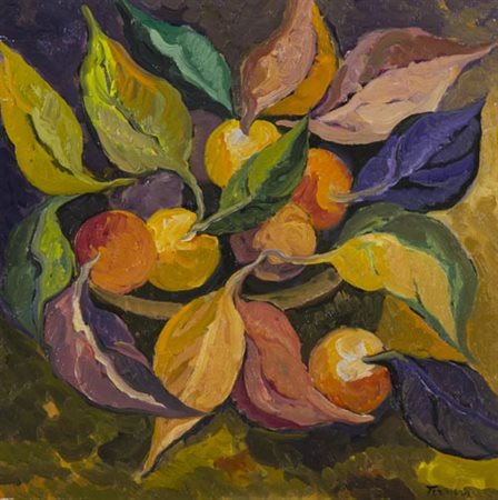 Saverio Terruso Monreale (Pa) 1939 Composizione , Olio su tela, cm. 50x50 Firmato in basso a destra; Sul verso: firma, titolo e scritto di autenticità dell'Artista; Dedica a persona datata 1998. Autentica dell'Artista su foto.