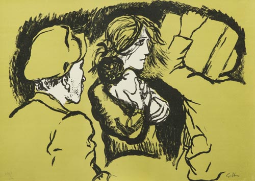 Renato Guttuso Bagheria (Pa) 1912 Roma 1987 Gli emigranti , Litografia su carta, cm. 46x65, es. XVI/L Firma e timbro a secco "Il Bisonte Stamperia d'Arte", in basso a destra, tiratura in basso a sinistra.