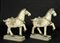 Coppia di cavalli in avorio composto, inciso e dipinto, su base ottagonale, Cina.