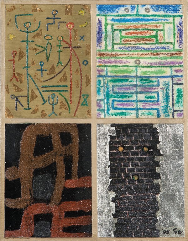 SEKINE YOSHIO (1922-1985) Playground 1988acrilico su tela cm 41,5x32firmato e...