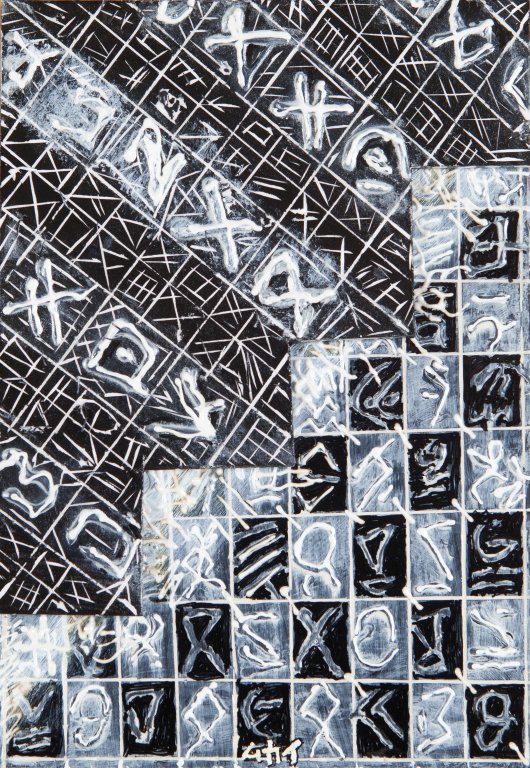 MUKAI SHUJI (1939-) Work 2013acrilici su tavola cm 22,7x15,8firmato e datato...