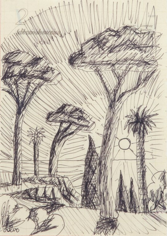 SALVO (1947-2015) Paesaggiobiro su carta cm 20x14firmato in basso a...