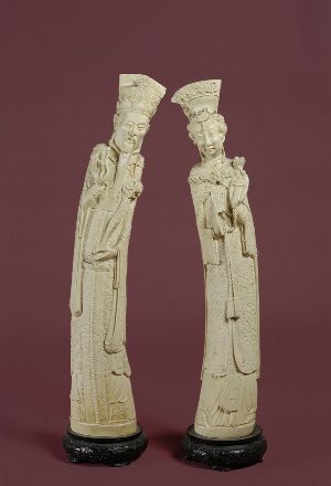 Lotto 368 | Coppia di coniugi statue in pietra intagliata e dipinta firma sotto la base....
