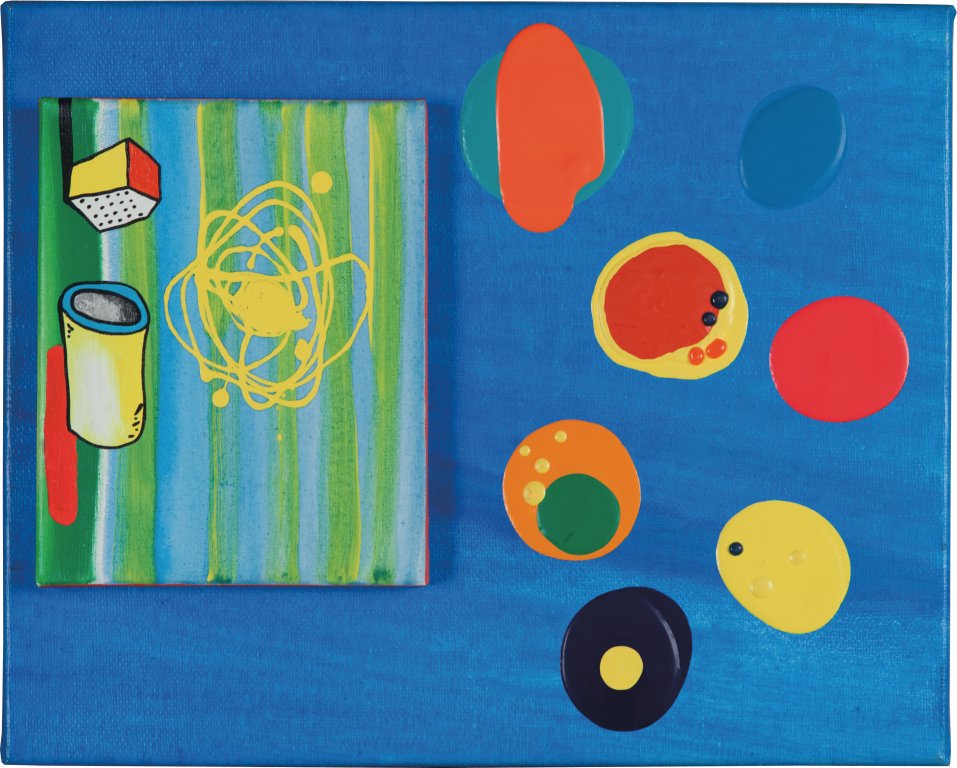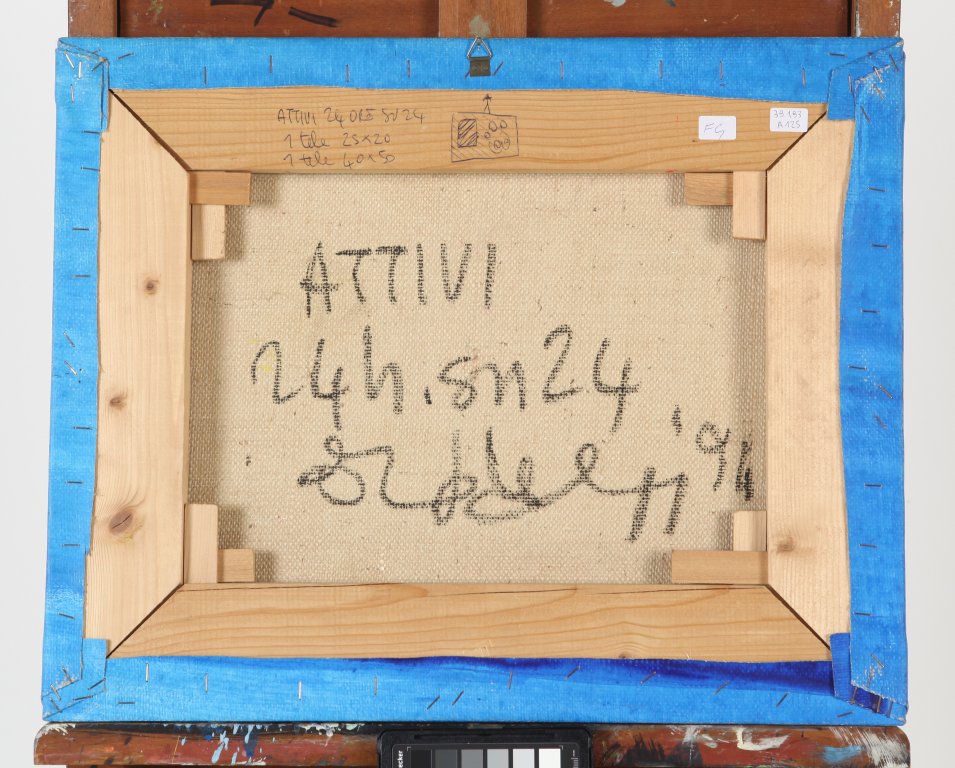 ENRICO DE PARIS (1960-) Attivi 24 ore su 24 1994olio su tela cm 40x50 e cm...