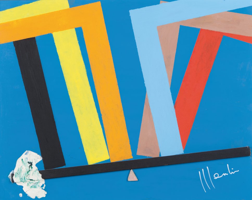 ALDO MONDINO (1938-2005) Le bilance (anni Settanta) acrilico e tecnica mista...