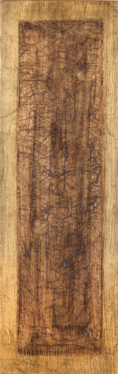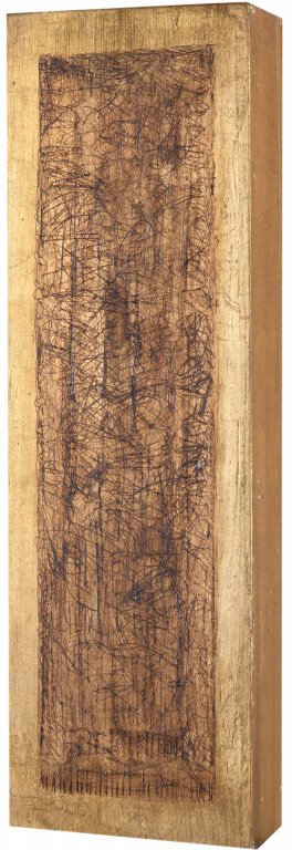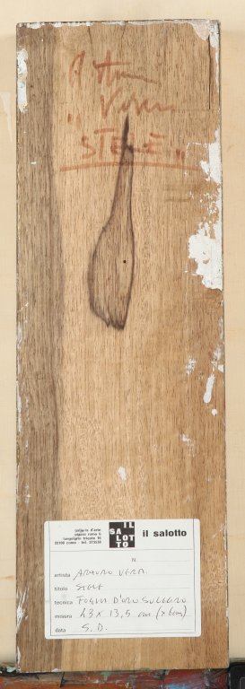 ARTURO VERMI (1928-1988) Stele foglia d'oro su legno cm 43x14x5,5firmato e...