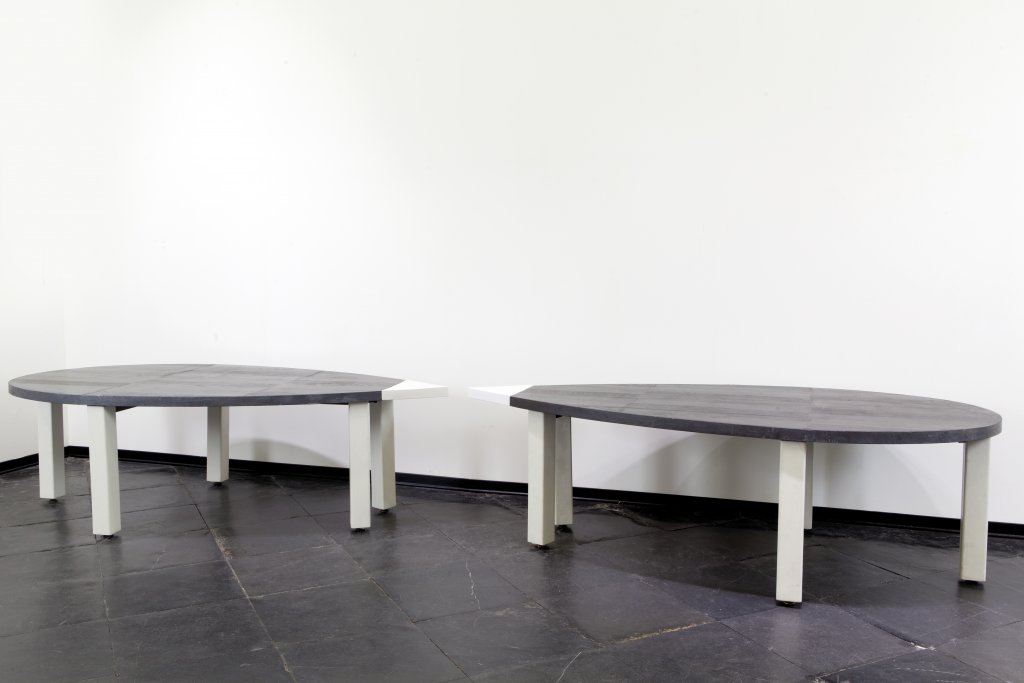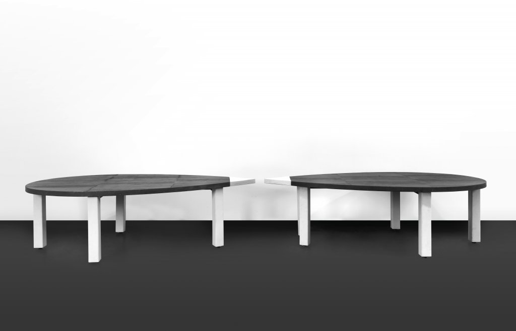 burnt cedar, oak and beech wood, lead and earthenware 196,8x51,2x29,5 in