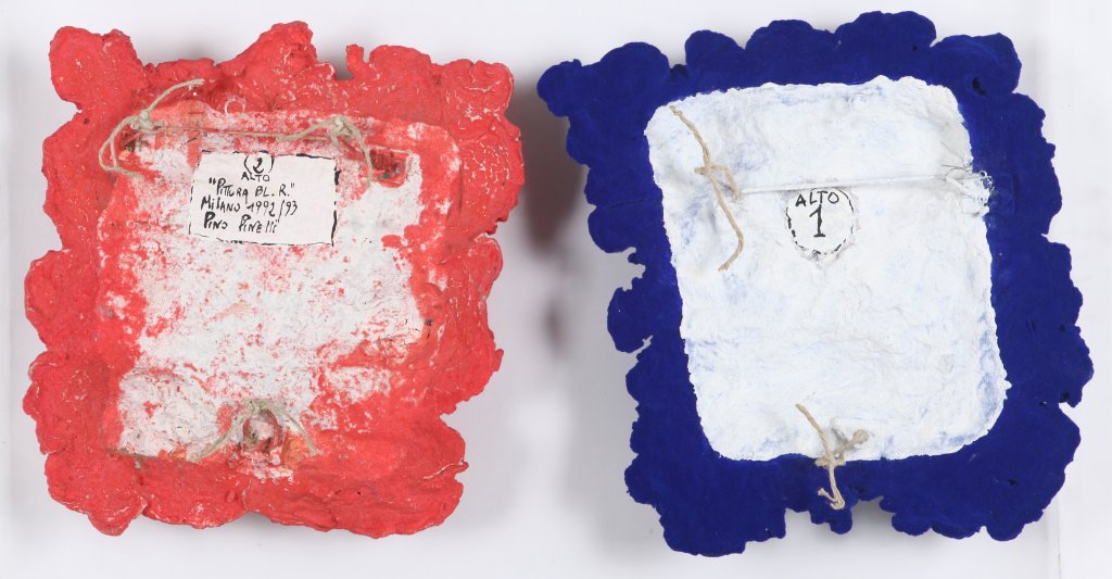 PINO PINELLI (1938-) Pittura BL.R. 1992-1993tecnica mista cm 35x32,5 cad. (2...