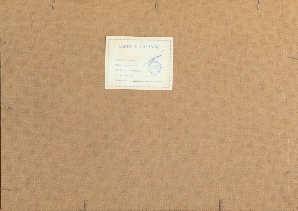 sul retro: carta di garanzia e timbro della Galleria d'Arte Il Punto, Savona