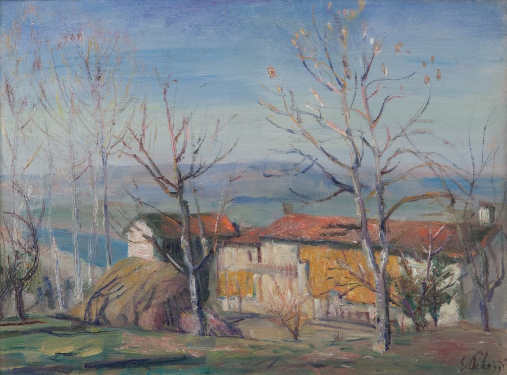 ESO PELUZZI (1894-1985) Mattino di novembre 1954olio su tavola cm...