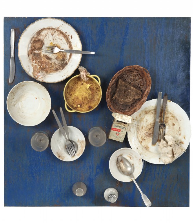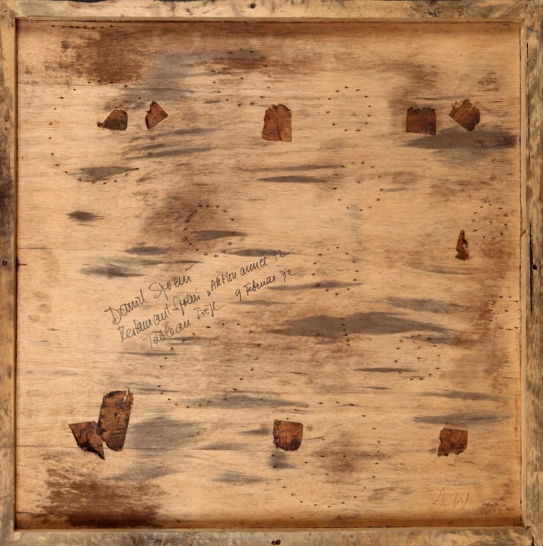 DANIEL SPOERRI (1930-) Restaurant Spoerri Aktion année 72 1972Tableau Piège...