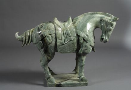 Cavallo in giada intagliata e incisa, Cina, fine XIX sec., cm. 50x76