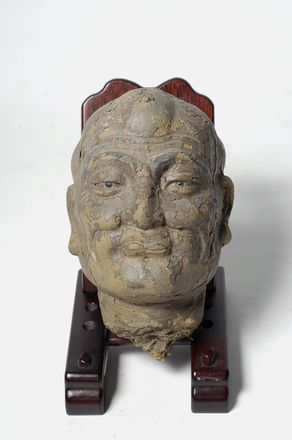 Testa di Loan in terracotta con tracce di policromia, occhi in pasta vitrea, Cina, XII sec., cm. 23