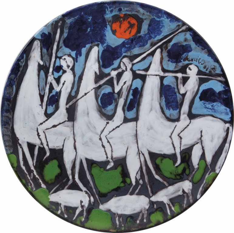 D'AMICO STEFANO (1925-2003) Senza titolo smalti su terracotta diam cm...