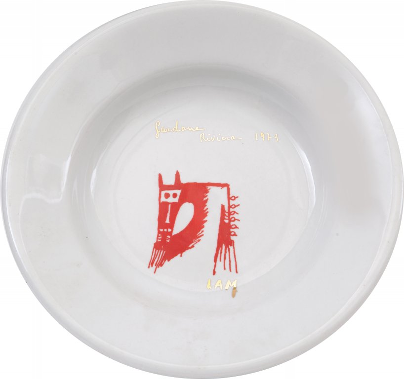 WIFREDO LAM (1902-1982) Gardone Riviera 1973porcellana diam cm 23firmato in...