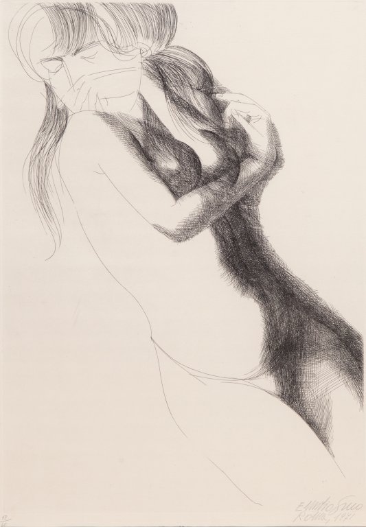 EMILIO GRECO (1913-1995) Fanciulla raccolta acquaforte cm 50x35esemplare...