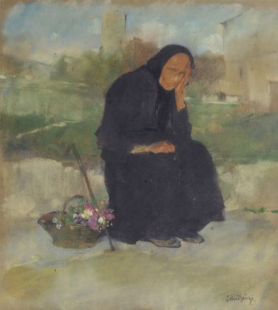 Silvio Bicchi (Montopoli, 1874 - 1948) FIGURA SEDUTA Pastello ad olio su carta, cm. 32x29 Firma in basso a destra.