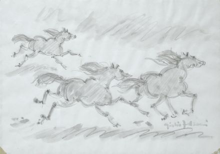 Lotto 543 | Giulio Falzoni (Marmirolo, 1900 - 1978) CAVALLI Acquarello su carta, cm....