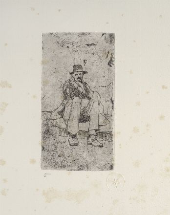 Giovanni Fattori (Livorno, 1825 - Firenze, 1908) CONTADINO TOSCANO Acquaforte, mm. 505x350 (foglio); mm. 150x80 (lastra) Timbro a secco del Cinquantenario in basso a destra.
