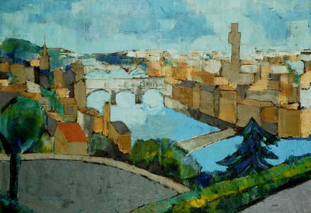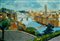 Anonimo del XX sec. PANORAMA FIORENTINO Olio su tela da imballaggio, cm. 70x100