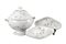 ZUPPIERA e due ANTIPASTIERE in porcellana decorata a motivo floreale. Palermo...