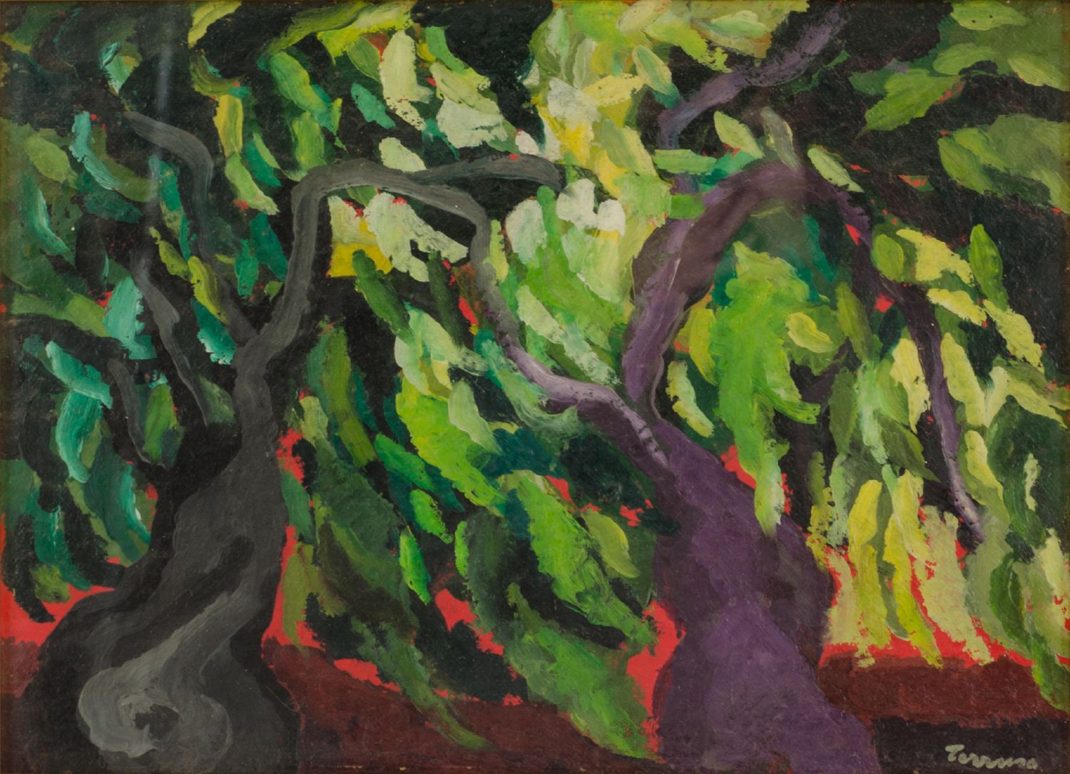 SAVERIO TERRUSO (Monreale 1939 - Milano 2003) OLIO su compensato "ulivo",...