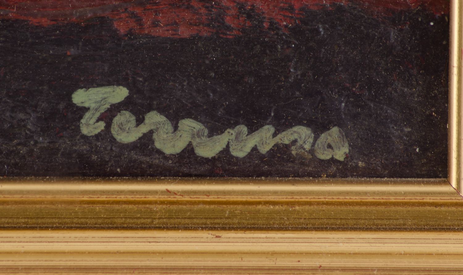 SAVERIO TERRUSO (Monreale 1939 - Milano 2003) OLIO su compensato "ulivo", firmato in basso a destra (con certificato dell'archivio generale delle opere N. AS 188 D10. Misure: cm 38 x 52