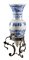 VASO in ceramica dipinta con rubinetto e base tripode in ferro. XX secolo...