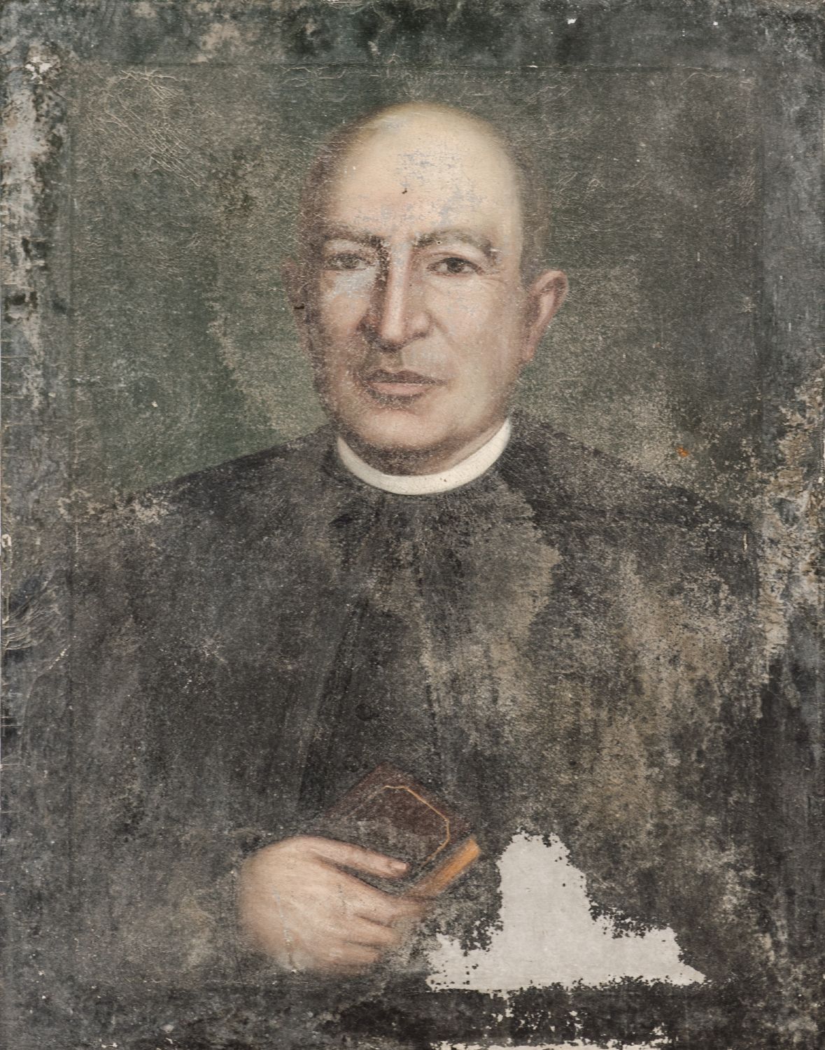 TANASI CORRADO OLIO su tela "prelato" firmato nel retro.(mancanze di colore e difetti). Datato 1898 Misure: cm 70 x 54,5