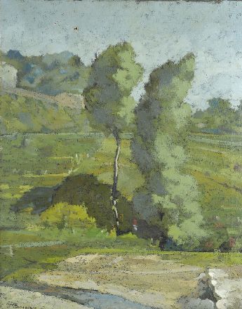 Seve Sospizio (Perugia, 1908 - Senigallia, 1962) DIETRO LA CERTOSA, 1942 Olio su tela, cm. 50x40 Firma in basso a sinistra. Sul verso: firma, data e titolo.