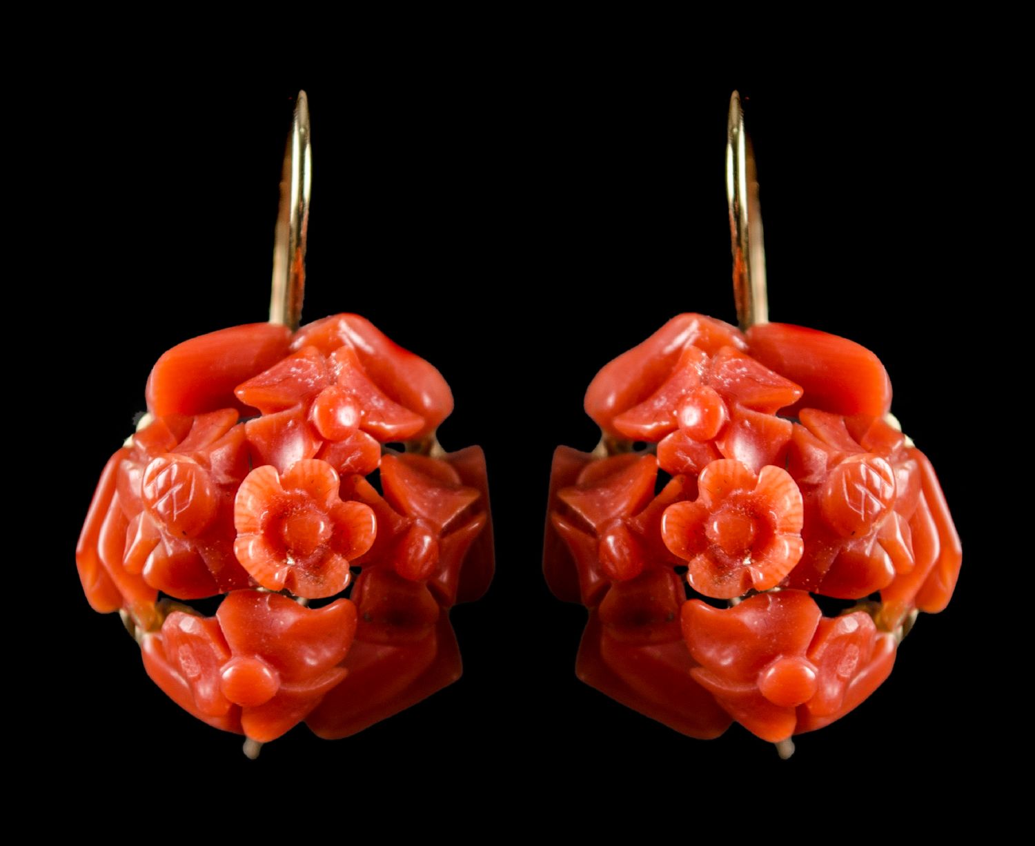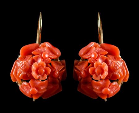 ORECCHINI in oro basso titolo con bouquet di fiori in corallo rosso.