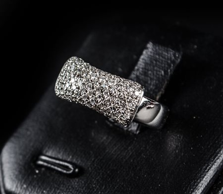 ANELLO in oro bianco 18 Kt. con pave' di brillanti (Kt. 1.10).