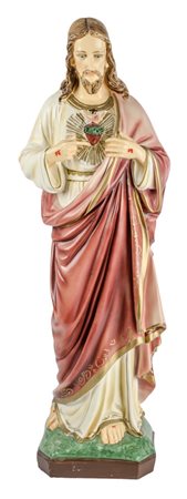 SCULTURA in schiuma di gesso policroma raffigurante "Sacro Cuore di Gesu'". XX secolo Misure: h cm 80