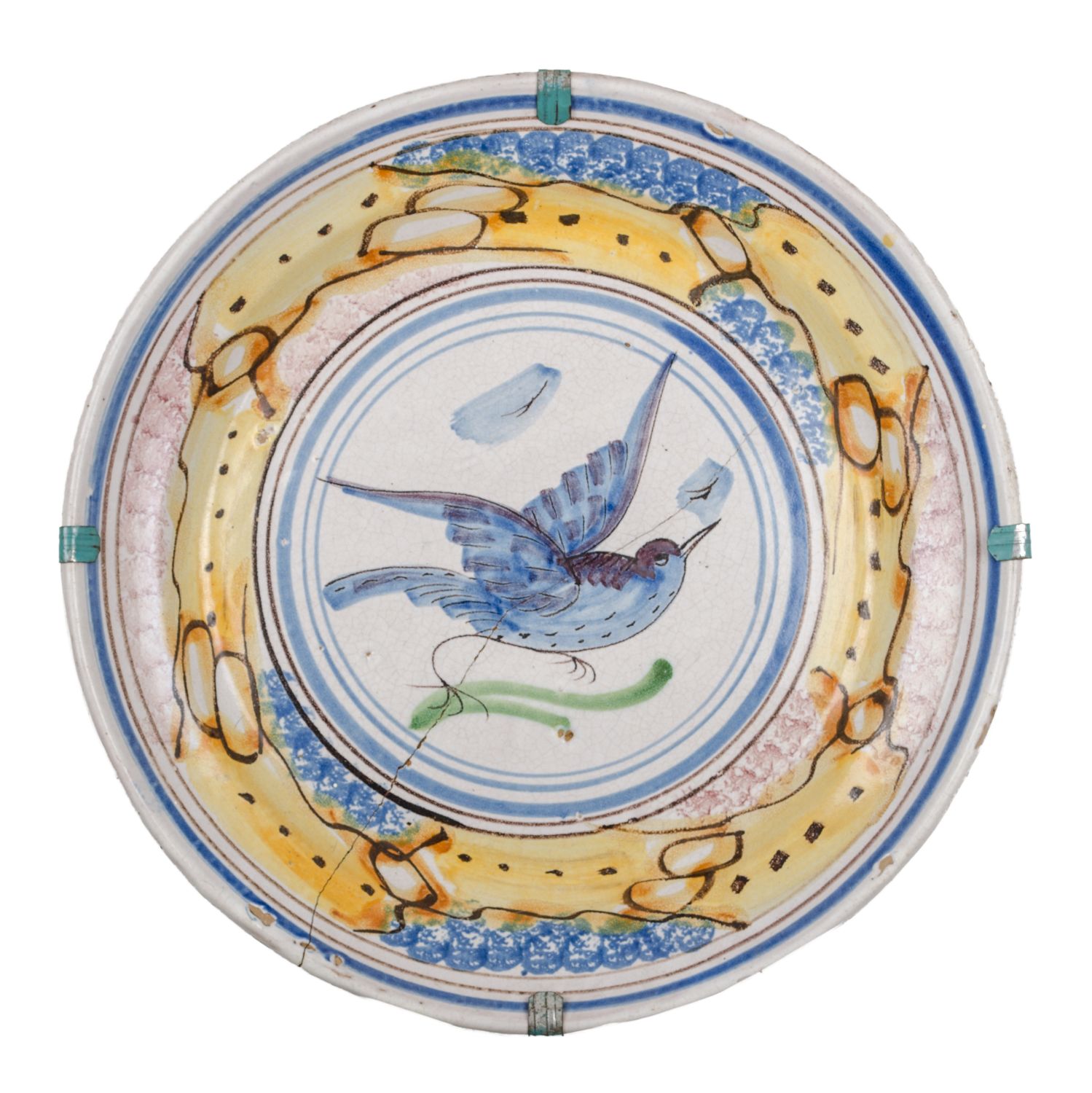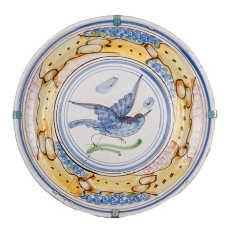 FANGOTTO in ceramica smaltata e decorata (filature). Sicilia XIX secolo Misure: diametro cm 43