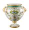 VASO in ceramica smaltata e decorata con manici a guisa di teste leonine....