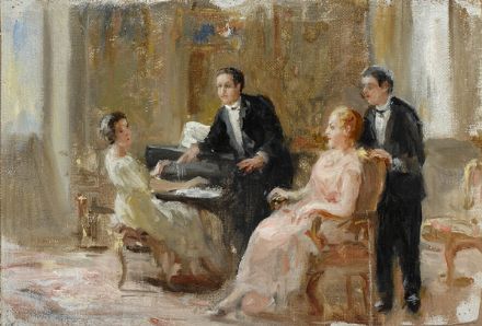 Alfredo Dondoli LA FAMIGLIA DI BENIAMINO GIGLI Olio su tela riportato su cartone, cm. 20x30