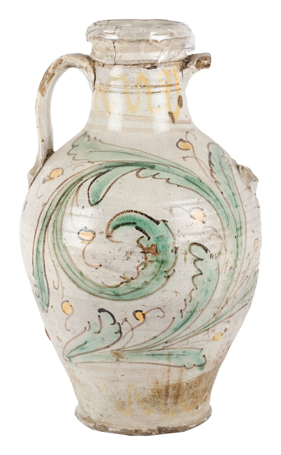 ANFORA in ceramica smaltata e decorata (mancanze e filature). Caltagirone 1840 Misure: h cm 56