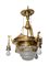 LAMPADARIO in ottone dorato a quattro luci con boccia in vetro (mancanze). Italia primi '900 Misure: h cm 95