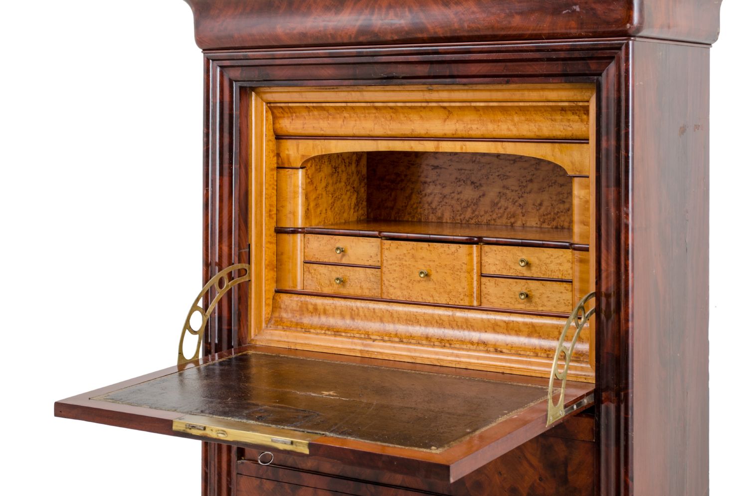 SECRETAIRE Luigi Filippo in piuma di mogano con tre cassetti sottostanti,...