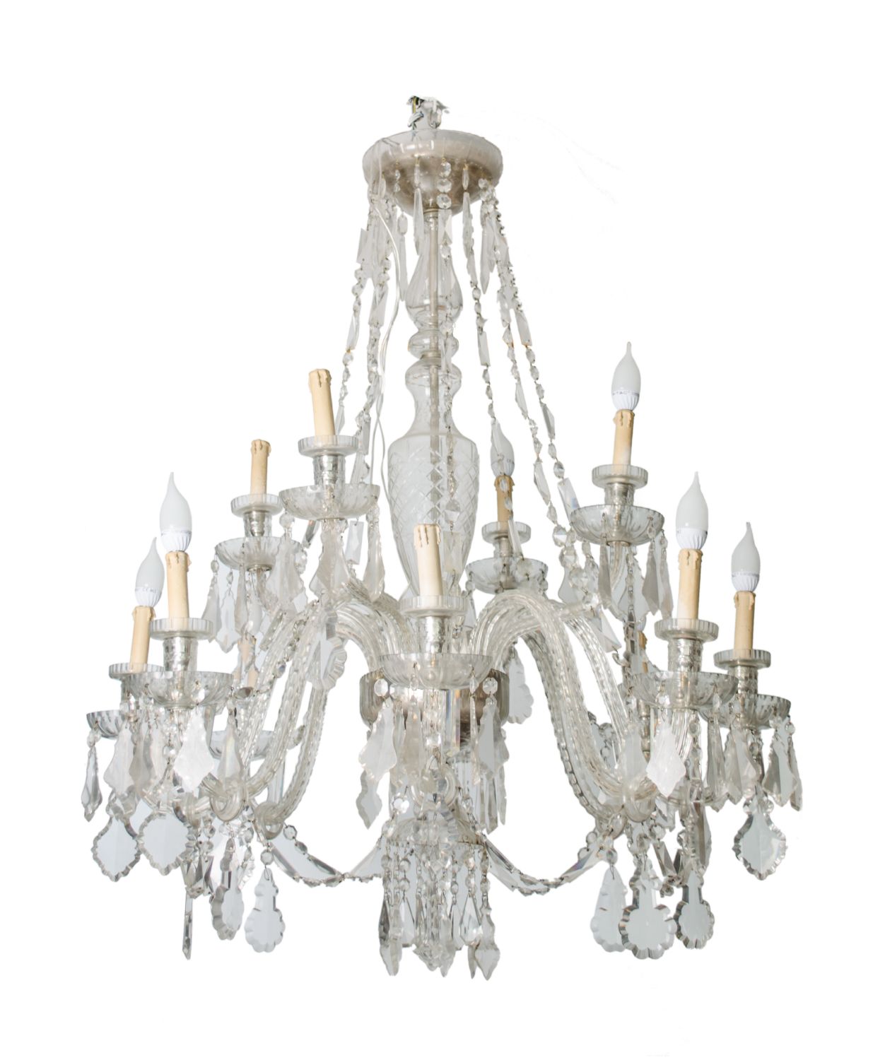 LAMPADARIO a dodici luci in vetro con brindoli. Italia primi '900 Misure: h...