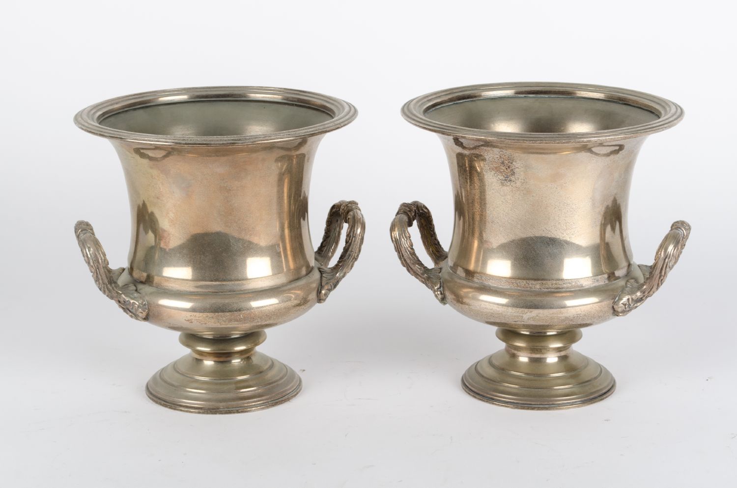 COPPIA PORTABOTTIGLIE in Sheffield. Inghilterra XX secolo Misure: diametro cm 23 x h 23