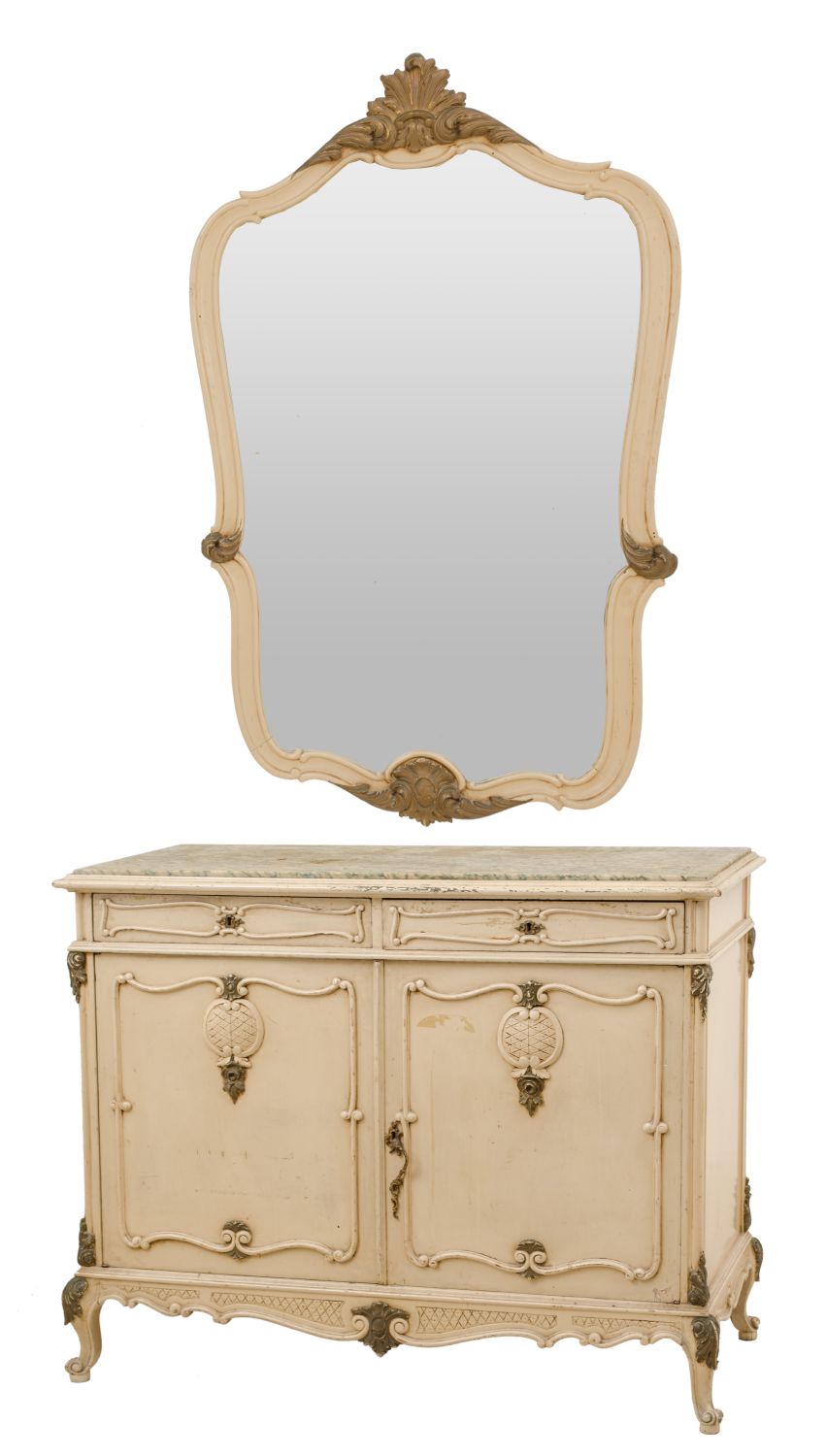 CAMICIERA stile Luigi XV con specchiera e cassettiera interna in legno laccato, piano in marmo verde venato. Sicilia primi '900 Misure: cm 119 x 52 x h 96